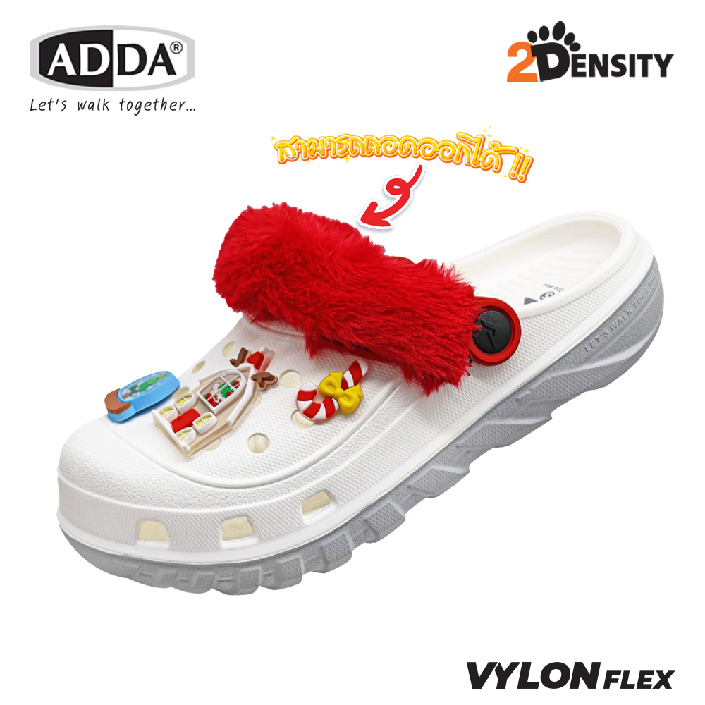 ADDA 2density รองเท้าแตะ รองเท้าลำลอง สำหรับผู้หญิง แบบสวมหัวโต Christmas รุ่น 5TD24WH (ไซส์ 4-7)