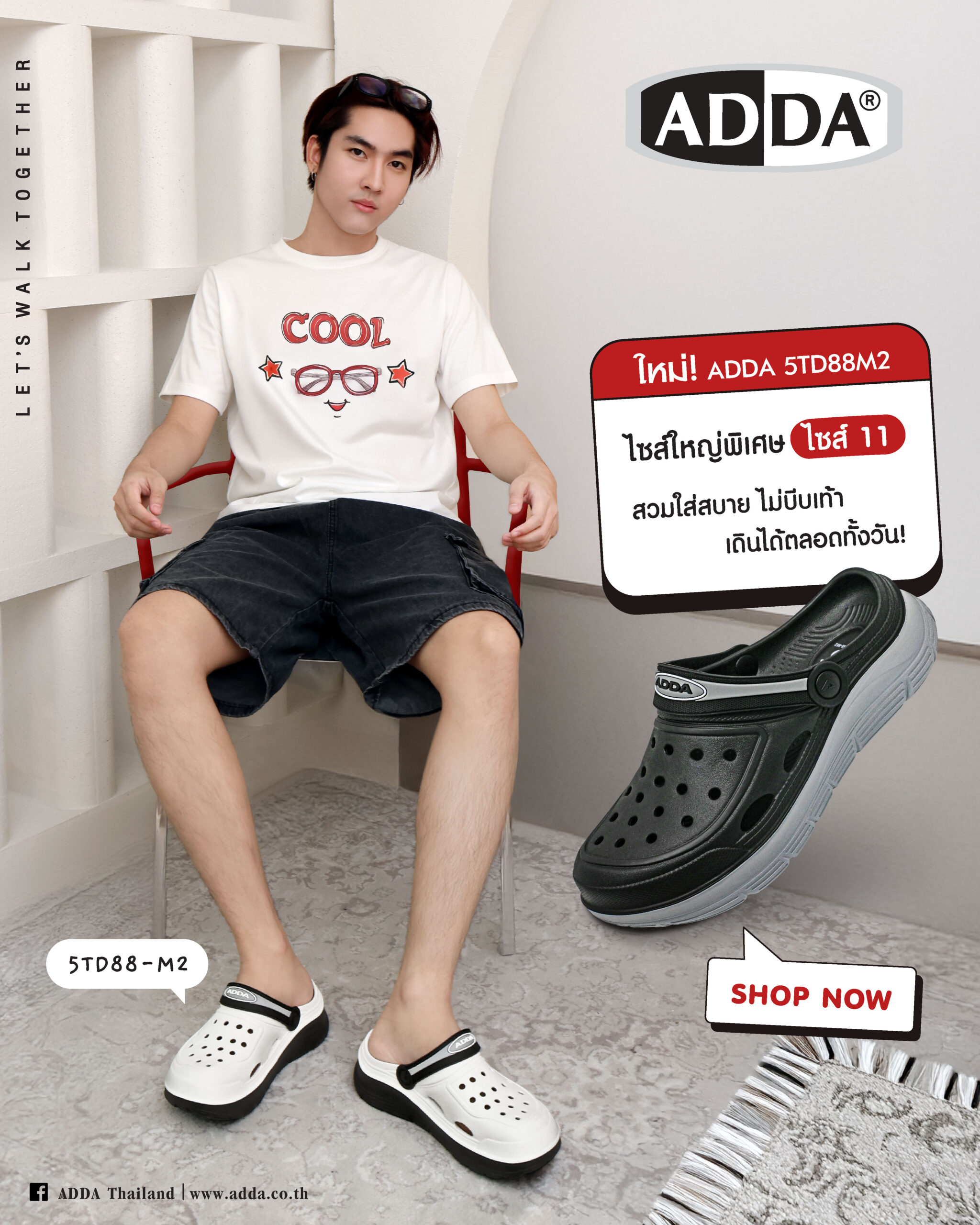 ADDA รองเท้าแบรนด์ไทยที่ได้รับการยอมรับในเรื่องคุณภาพและงานดีไซน์จากลูกค้าชาวไทยและต่างชาติ รองเท้า ADDA รูปลักษณ์สวยงามทันสมัยสวมใส่สบายเท้า น้ำหนักเบา แข็งแรงทนทาน มีหลายแบบ หลายสไตล์ ตอบสนองความต้องการของลูกค้าทุกเพศทุกวัยได้อย่างครบครัน