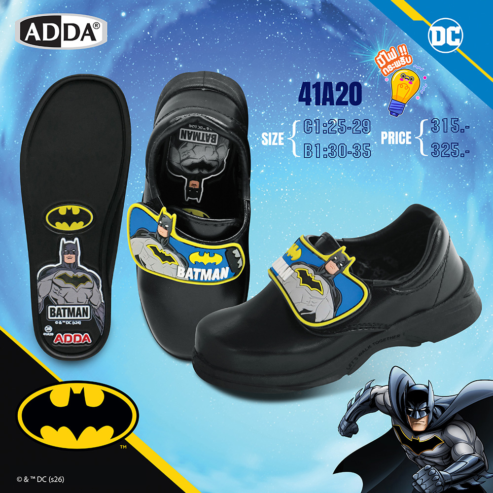 ADDA รองเท้านักเรียน ลาย BATMAN ลิขสิทธิ์แท้ รุ่น 41A20C1B1 (ไซส์ 25-35)